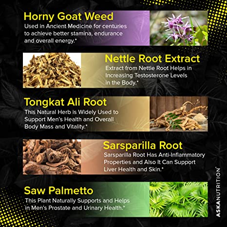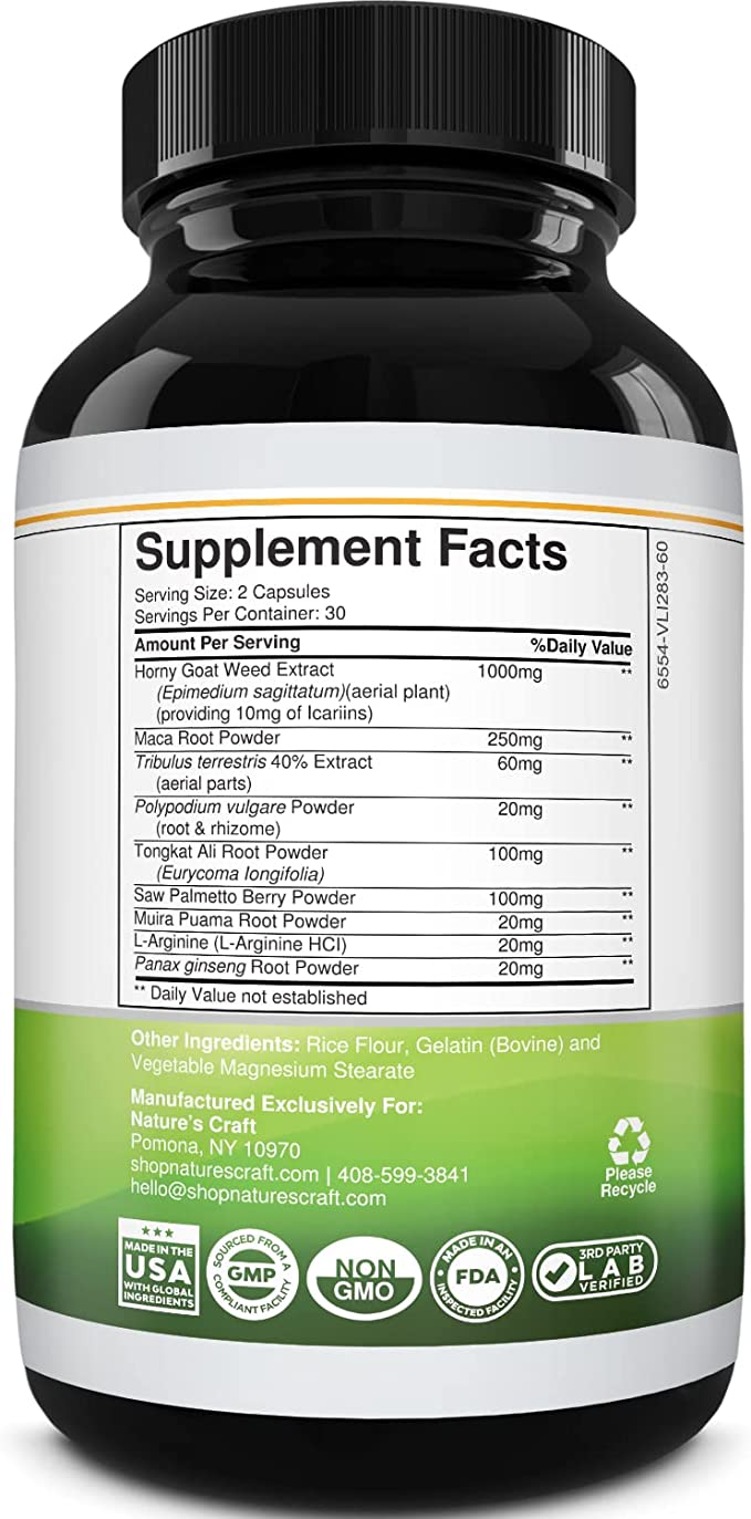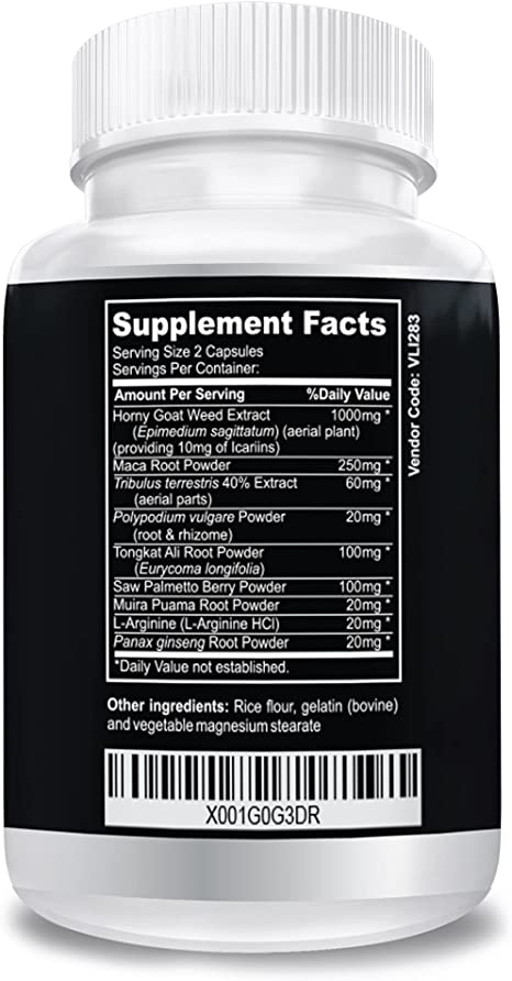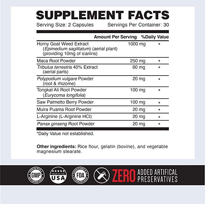 Horny Goat Weed, L-Arginine, Tribulus Terrestris, Tongkat Ali, Maca Root, and more into one Ultimate Supplement.