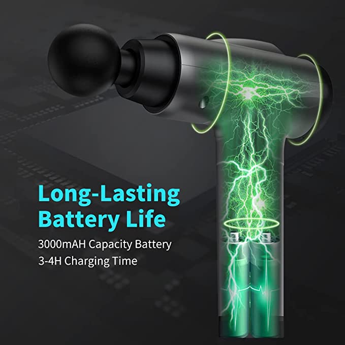 Rechargeable battery & smart LED display: Powered by a rechargeable battery, our deep muscle massager gun runs for several hours straight. The built-in display shows off speed and battery percentage, so you always know when to charge.