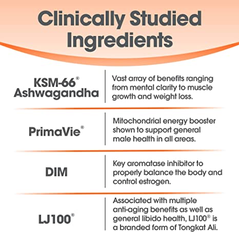 Increase Free Testosterone Levels*: KSM-66 Ashwagandha has shown positive outcomes at 600 mg, but we deliver 1,000 mg for optimal testosterone levels with normal range, plus additional benefits including mental clarity and muscle growth.* Additionally, PrimaVie Skilajit-Fulvic Acid has shown to increase free and total testosterone levels.*