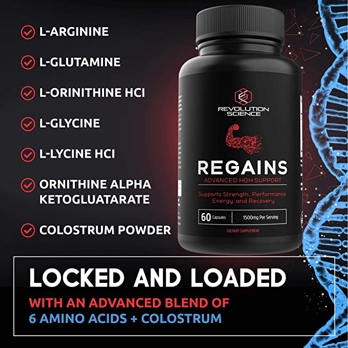 HGH Supplements for Men - Regains Naturally Stimulate Human Growth Hormone for Men - HGH for Men, Muscle Building, Muscle Growth Supplements for Men & Women, Amino Acid & Bovine Colostrum, 60 Capsules