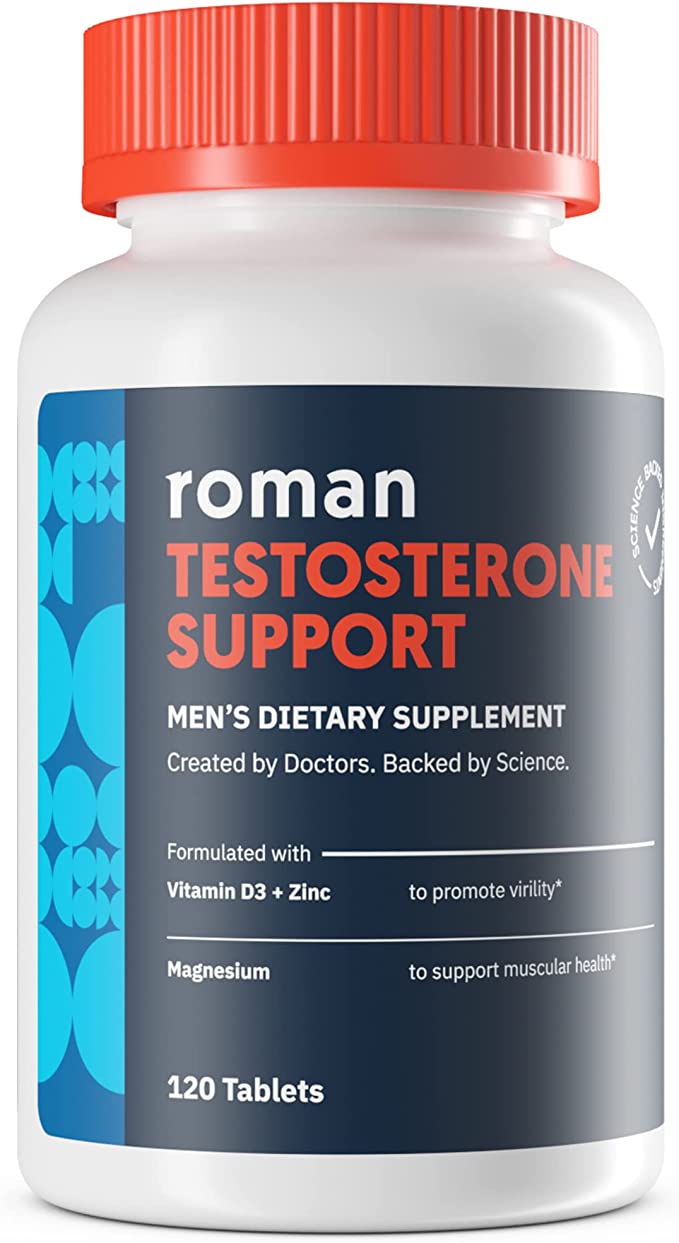ABOUT THE PRODUCT: Meet Roman Testosterone Support, a nutritional men's supplement blend for your daily life. Our doctor-formulated supplement features ashwagandha to support healthy testosterone levels, and magnesium to support muscular health.* Hormone-free. 30-day supply (120 tablets).