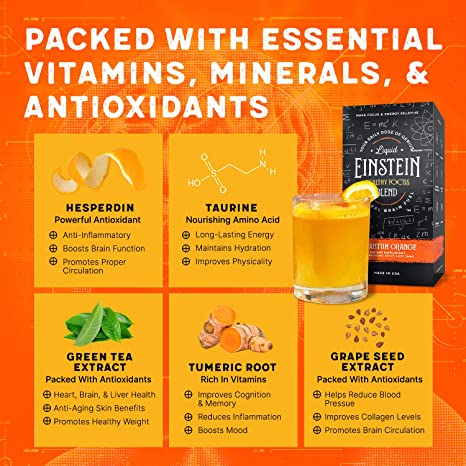 Focus-Enhancing: Key ingredients of Liquid Einstein brain booster from nature help reduce brain fog and fight mental exhaustion so you can remain focus and alert!