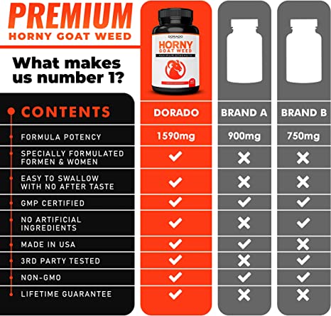 MADE IN THE USA & GMP CERTIFIED - Dorado Nutrition is proudly a 100% American owned company creating jobs & better futures for all our employees & stakeholders. All of our supplements are manufactured in the USA! No gluten, no wheat, no dairy, no sugar, no soy, and no yeast. Our horny goat weed capsules are GMP compliant to ensure premium quality. Our supplements are always free from unnecessary additives or preservatives and are third-party independently tested.